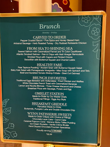 The Buffet is in Wynn Hotel offers various dishes that customers from all around world could enjoy the fine dining experience. Particularly line of menu are long and well presented. If you like pasta, seafoods, steak, or vegetarian dishes, you name it the buffet have the exact ones or similar kinds. Even though the buffet offer long line of attractive dishes, some of them are not cooked well or have the great taste like other high-end restaurants would offer in that price range. Servers who serve drinks are well mannered and very friendly: however you may find servers nearby food table area who serve steak or refill foods might be busy talking to themselves and less responsive to customers request. Such a restaurant in one of the best hotels in Las Vegas, I would expect the better service or, at least, have the professionalism from serves in the kitchen or food table area. • Service: Below average (compare to other high-end buffet or local restaurants in Las Vegas hotels) • Price: Pricy as all high-end restaurants would (you may find discount coupons from local discount shops) • Atmosphere: Excellent (very nice and well presented) • Food Quality: average for seafoods (remember you are in desert area not by ocean side) and great for dessert (wide range of selection for dessert). • Parking: Valet parking is available or self parking in Wynn hotel garage • Avoid factor: Make sure to leave some room for dessert. Be patient with serves nearby food table if they are busy talking to each other. Steak and meats area, servers may not be well responsive or friendly. • Recommendation: Try their dessert (better than advertised seafoods – in my opinion their seafoods are overrated).