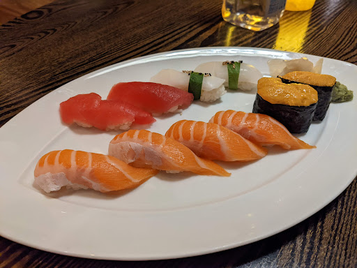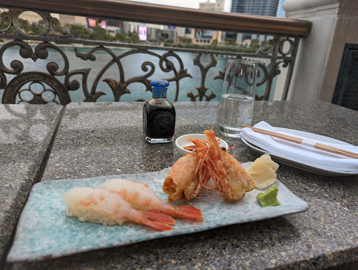 The sushi here is very good. Wonderful wait staff, very friendly and quick. Be prepared to wait even if you have a reservation. We had one, but it was 45 minutes of sitting at the bar before we were finally seated. The bar is nice, the bartenders busy (they serve the entire restaurant), but friendly. Prices are a tad high, but the sushi and ambiance pays for it. For those who want a romantic dinner - ask for the deck outside! There are four areas of this restaurant; a lounge style area that faces into the casino, the bar area which gives you the option to eat at the bar or at high chairs/tables across from the bar, the main dining room which is down 3 stairs from the bar, and then the deck which is on the water of the Bellagio fountain. Pro tip - looking for that ultimate romantic dinner? When you make your reservations - ask for the deck and request the last table farthest away from the door going to the deck. This is a two person table, nestled in the corner right on the water. You have no foot traffic of wait staff, and with the beautiful fountain going, you truly feel like you have your own private restaurant all to yourself. Get that outside seat. On a warm night, having the fountain show go off and feeling the light mist of water on you (youre than close!) is really magical.