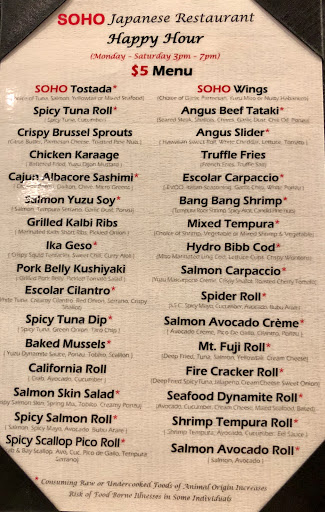 Soho is my wife and my favorite sushi spot in Vegas. The quality is consistent time after time, and there is also great service and value. The happy hour menu is great, affordable and delicious, and the specials have always been fantastic.
