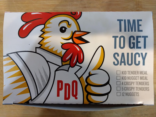 Excellent food and service. They specialize in chicken, but have a few other menu items as well which helps give them a leg up over Raising Canes (which is still good, but not as good as PDQ). Salads, Sandwiches, and of course Chicken Fingers (breaded or grilled). Plus you get a variety of sauces to try without an extra charge. Highly recommend the zucchini fries.