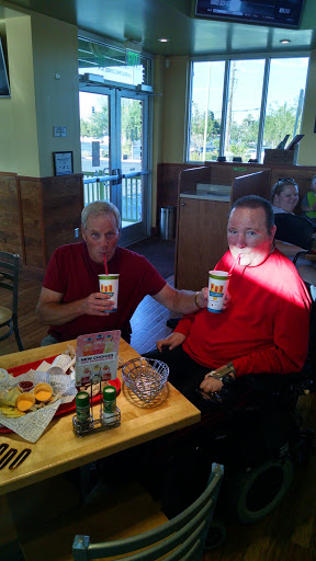 Food is great, had a double burger add bacon, YUM!! Wife had salad, just a regular lettuce with crispy chicken, kids nuggets w/fries was good. Small menu not a lot of variety to choose from. Service was quick!