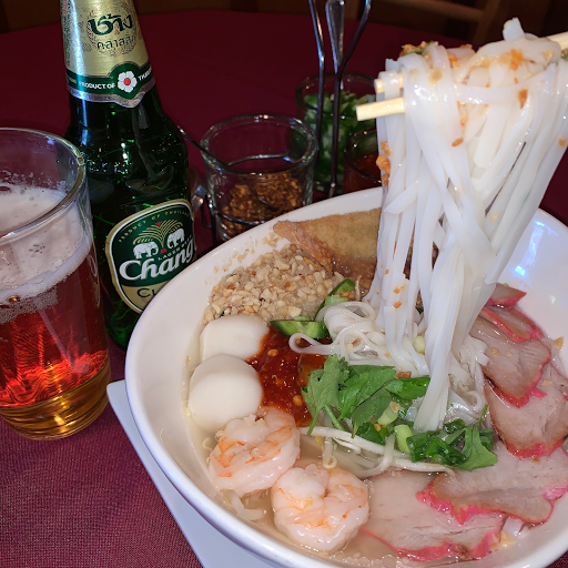 Came here based on the reviews. Just visiting from Vegas. Ordered the wanton soup and pud see ew w/chicken. The wanton soup had peas, baby corn, sliced pork, wanton, carrots, and cabbage. Great flavor and really filling. The pud see ew was very spicy, ordered level four out of five. That was delicious. Service was great. Only negative was the parking situation. Dont park in the east parking otherwise you might find a boot. Total price for my meal $15.99. Will come again. Enjoy!