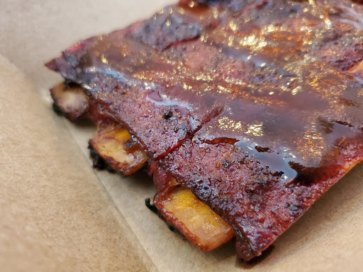 Ribs have great smokey/spice flavor, tender with just the right amount of pull.