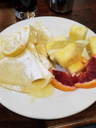 They serve their coffee using a table - side French press. I ordered a crepe with the peach cobbler option. The food was very good, but the portion size seemed a bit small. A nice downtown spot for breakfast.