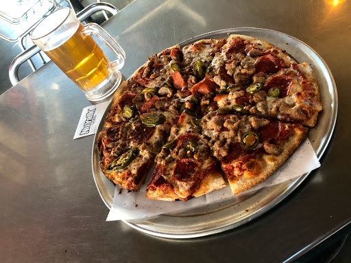 the pizza is pretty good the services nice. Interesting and pleasant atmosphere Industrial feel my architectural but he had a name for it but I forgot what he said something like commercial deconstruction