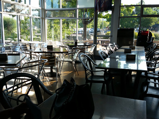 Great pizza, all organic ingredients, a little pricey but worth it. Has salad and sammich options; sells beer and wine also. Place has a good atmosphere.
