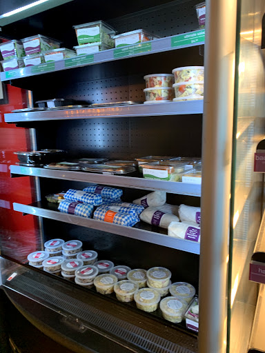 Service OK, but there were several employees at the coffee bar enjoying themselves, maybe on break. The food was very tasty but portions were small. Order taker had to take our order twice. They were out of at least half of the sides and breads offered on the menu. We ordered one sandwich for each of us, (two different kinds, the BLT and roast beef and bleu cheese) We received two BLT sandwiches. The water dispenser was pointed out to us but was empty. I see no need to return.