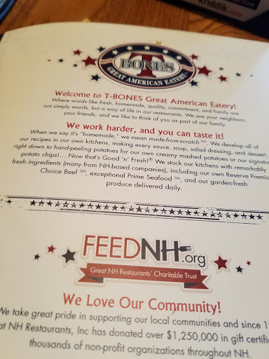 T-Bones is one of the best American restaurants in the Bedford/Manchester area. If you have a craving for all-American food, T-Bones is the place to be! They also have the best buffalo sauce youve ever had!