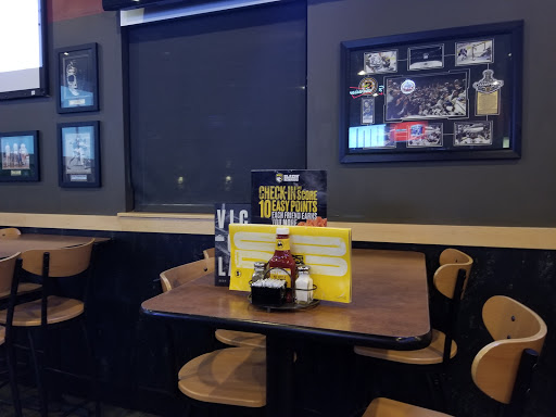 Went there with my son after a game. Waited more than 20 minutes for the bartender to come over and take our order. The place was really terrible Ive been to one in Burlington Vermont that was a lot better. people werent wearing gloves handling food cleaning and handling food. To be honest the place was kind of dirty. Real dirty. Observed an employee picking up trash with bear hands off floor then garnishing drinks at bar --