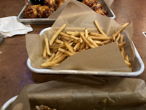 For the price of chicken wings here to me IS NOT worth it. If you like loud place this is for you. It took 3 times just to get my bufflo chips even remotely crisp. I mean when you say thick cut potatos cook to a crisp golden brown that is what you expect and not an attitude from your waiter. The garlic sauce on the wings made the chicken soggy. My partners hamburger was cooked correctly but was nothing special and for the 12 bucks red robyns is much better with better fries. And okay they did not mess up the salad. So salad, wings with horrible bufflo chips, hamburger onion rings, hot spice bonless chicken, medium size, with what they called chili and cheese on crisp fries, oh yeah the bonless chicken only came with a side of celery and or carrots for 16 bucks... Are you kidding... total 58 plus guilt tip... Ouch and gross for the price