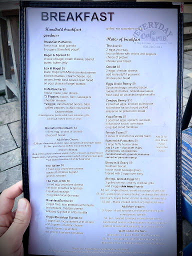 My wife and I have been frequenting this establishment for several years now. High quality food, friendly service, and a comfortable atmosphere. Ingredients are locally sourced if at all possible, and they serve White Mountain Coffee. It is tough to get a good cup of coffee and a good breakfast in the same place, but Everyday pulls it off in spades.