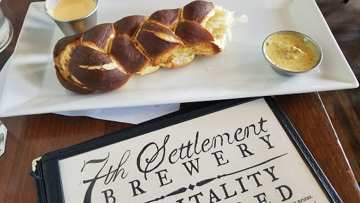 I have been going to the 7th regularly for a few years now. Here are a few things that I truly enjoy: The Beer - If you are a beer drinker and enjoy the micro brew trend of the last decade then you are in for a treat here. The 7th routinely has multiple varieties on tap and changes their selection often enough to be interesting but not so often that you will miss out on your favorite if you dont stop by every week. The Staff - I have typically gone mid-week when it can be fairly busy and have always been treated well by the staff. Whenever I have had concerns about food or drink, theyve always erred on the side of taking care of the customer, without an attitude. The Food - They typically have multiple specials per week as well as some standbys. Since I usually go for trivia night and have already eaten, I tend to get the lighter fare. The fish tacos are one of my favorite dishes whereas the beer roasted peanuts are a solid standby when enjoying a frosty beverage. The downsides? These are items that I find could use some work, though not all of these are able to be controlled. Big name beers - Though not an issue for me, some people just want a Bud Light or a Sam Summer Ale on occasion. Why you would be drinking one of those at a brew pub is beyond me but, for those with a taste for the name brands, youll not find them here. Reservation Policy - This is a curious one. There have been times where Ive been told the 7th allows reservations and conversely does not allow reservations. This is not too big of a problem if you have a small group (4 or less) but when traveling with 6-8 people could become an issue. A clarification of the reservation policy with the staff and the clientele would be a positive. Verdict - The 7th Settlement is a great place for a good tasting meal at a reasonable price for the area and type of establishment. You will receive good service and be able to sample a fine variety of beer. Give them a shot; I think youll be pleased.