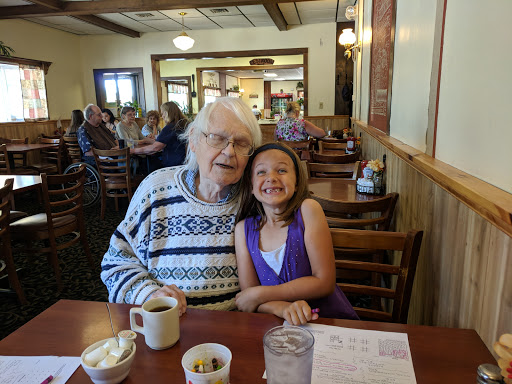 The outside is cheery and ample parking for RVs or 40 motorcycles. On a Thursday morning at 7:30 there was ONE customer besides myself and my two kids. First, the place is dirty. The floor under the counter seats looks like it hasnt been cleaned in months. The carpet where there is no traffic is gold and where there is traffic it is black. Inside is simply dismal and cries out for a "makeover". Despite the lack of customers the waitresses were having a big chat (not cleaning) and service was weak. The food was equally grim. Pancakes with strawberries were pancakes with microwave defrosted (we could hear it) dumped on top along with about a pint of syrup such that the pancakes were a soggy mess. At the very end of the meal (?) the waitress stopped her chatting and came over to give me the check and ask how the meal was. I told her about the pancakes. Her reply was "Oh." and walked away. There are plenty of other places to eat in this area other than this one.