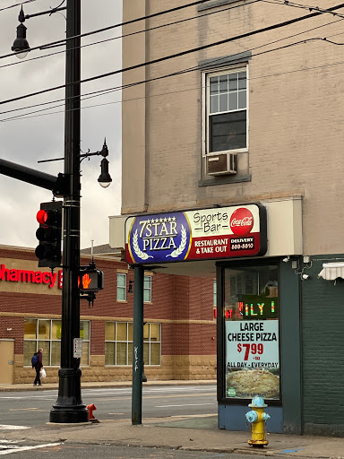 Good pizza. Fantastic pizza, actually. Theyve been around forever (since 94, at least, when I started partaking of their services). The chicken finger appetizers are worthy of inclusion for every delivery. 7 star pizza is in a different and better universe than (shudder) dominos pizza. Yes, their walk-in location is a bit awkward, giving their intersection of Main Street and a high traffic one-way street (and the lack of parking). Still there ~are~ places to park. And they have a bar. (Did I mention they have a bar?) This pizza does not suck. Nuff said.