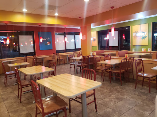 Brand new store. Looks great. Im not a huge fan of fast food, but I thought Id give it a try. Food was fine. Nothing to get excited about. When I went, there was only one register open and it looked like the person was training so the line of two people went very slow. The line had increased to 6 by my turn. The super fancy soda machine was also out of a bunch of soda types.