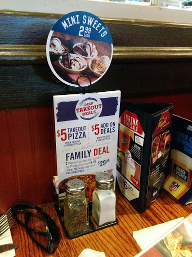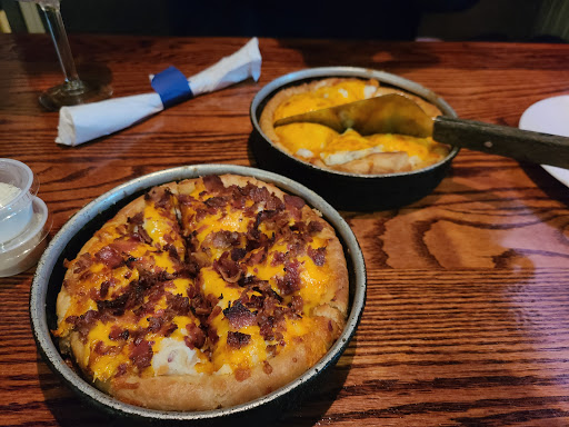 Ive only been once, so take the 5 star with a grain of salt. I stopped on a whim and I was very pleased with the experience from start to finish. It was reasonably busy and I really prefer to have a booth when I eat at a restaurant, to which the wait staff accommodated without complaint. The menus werent too big and easy to understand. Our waitress, wish I could remember her name, was very helpful and knowledgeable in reccomendending items for starters and drinks. For their pizza, my lady had a deep dish pepperoni, and she thoroughly enjoyed it. Myself I dont remember the name of the pizza itself but it was a thin crust pizza. However, Im not a big pizza sauce and Im one of those basil pesto sauce wierdos, which they didnt have on their menu, but after inquiring with the waitress she said they could make it with the sauce I wanted, something I appreciated greatly. Both pizzas came out hot and it seemed that they were made by people who gave a damn about making good pizza. Oh, also, the manager took the time to stop by our table to see how our experience was at the restaurant. Upon learning that it was our first time he did offer free dessert to us, which was nice, but we couldnt possibly have eaten anymore as the rest of the meal was quite delicious. Id recommend going and Ill most likely head back when Im out that way and Im trying to decide what to have for dinner.