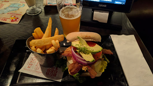 Seriously overpriced. Ordered a simple burger, no cheese, no bacon, no bun and asked for it to be served on a bed of lettuce. I was charged $8.99 for a cool, overcooked burger with one 3 inch piece of lettuce, two slices of tomato and three strands of onion. I substituted sweet potato fries, also served cool and wet and was up charged $1.49. The chips, salsa and guac arrived after the meal was over. My sons burger and fries were equal in quality to mine. This is the third and last time Ill ever eat at this place.