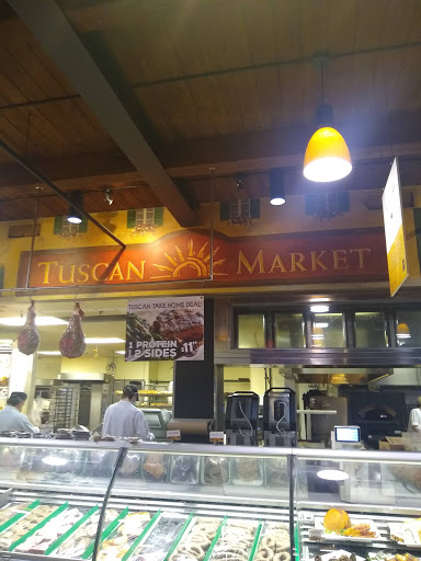 I give the Tuscan Market 5 stars. I was like a kid in a candy store there. Very impressive. We brought and filled a cooler with lots of goodies. The Tuscan Kitchen however let us down a bit. The servers were outstanding, Melissa and JR. They were very knowledgeable and friendly. The problem was that we initially sat for just about over 15 minutes before anyone came over to us. I complained at the front desk and we finally received service. Im sure that does not happen all the time and the manager did give us free deserts. The Matradee with long dark hair had no personality AT ALL. She did not want to be there and really took the fun out of the air. She needs to be friendly and smile. After being on such a high after going to the Tuscan Market, this was sure a let down. As for the food, it is a pasta place. Great homemade pasta and sauces. The meat dishes however were terrible. The steak was overdone and hard to chew. No seasoning. The veal was hard to cut. You cannot taste the fresh vegetables that come with the veal since they are overly sugar candied. Didnt even know you were eating a carrot. We will be back to the market and cafe as often as possible, but next time I will order pasta for dinner at the Kitchen.