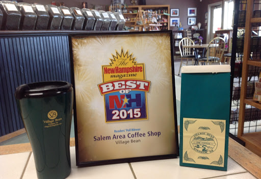 The Village Bean is my favorite coffee shop in Windham, NH. I love stopping in for a relaxing cappuccino or an organic green tea. Its a great place to meet a friend and linger for a bit. If you need a unique and thoughtful gift, youll find a nice selection here. Check it out, in the Village Green Shops, across from the Windham Post Office. Theres an easy entrance and exit at the traffic light.