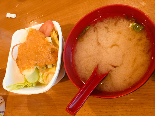 Well I went in for a lunch and I asked for a lunch sushi men . When she presented me with it I told the woman I was going to sit at the sushi bar. She insisted I get take out instead of eating there and when I had to promptly repeat myself that I wanted to eat in she finally had me sit at the ba . The sushi bar men are so rude! The entire time I was there they were on their phones ! As Im eating my salad (I wasnt even there for 5 minutes) I ordered a sweet potato roll and shrimp tempura roll. Literally as soon as I got my first bite of my salad they had already put a roll onto my plate. Which doesnt make sense cause every single sushi place Ive been to has taken 10 minutes or more to make a deep fried roll. So curious on how I wasnt even there they placed a roll that Im guessing was made way before I even got ther . Not a good first impressio . The sushi guys were on their phones the entire time and ignoring everything Ive asked the . When they actually looked up from their phones for the couple seconds they were blatenly staring at me. The one waitress was very nic . But the rest of them were garbage. Never again will I retur .