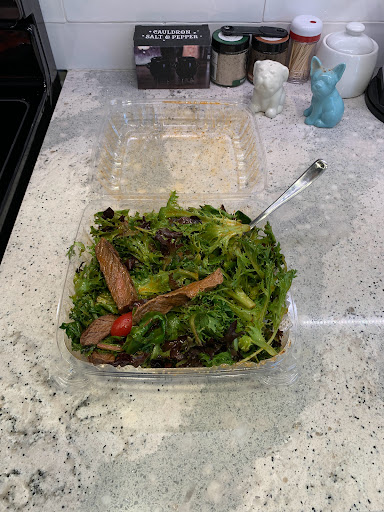 I ordered the black and blue salad. It came by delivery and did not have any blue(Gorgonzola). I called after my lunch break and was told he could bring me the gorgonzola(salad was already eaten) or he can give me a 1$ credit. Thanks a lot.