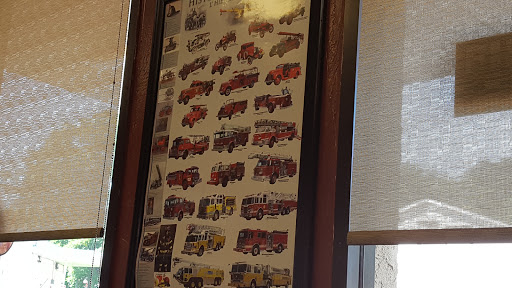 A pizza place with character, well-decorated in honor of firefighters. You are greeted by a tall sculpted waiter as you enter this tiny place...food is excellent and staff is very friendly.