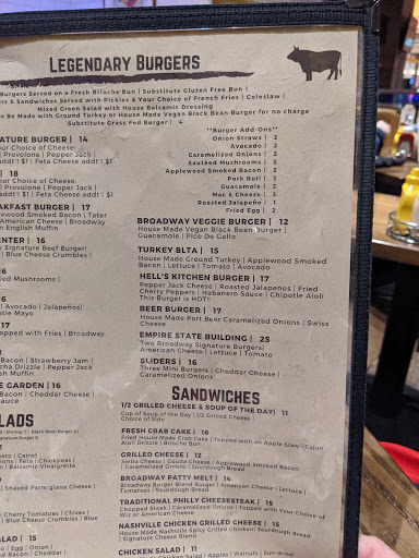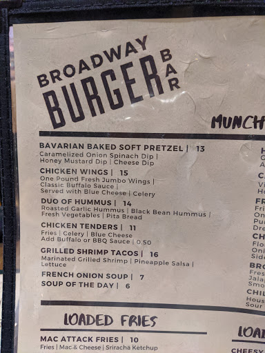 We had such a great time! We came on a Friday night after carmines messed up our reservation. Broadway burgers accommodated our large group with kids quickly. Food was awesome. Drinks were great. Loved our waiter, Matt, and the entire staff. Somehow, they managed to get our complicated order right and handled our large group without a problem! Thank you guys (and especially Matt) so much again!