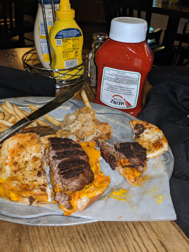Was able to order food and take it to hotel efficiently. Food was very good. It was 16 dollars for a 1/2 lb (pretty big) burger with bacon cheese and onion strings with a side of fries.