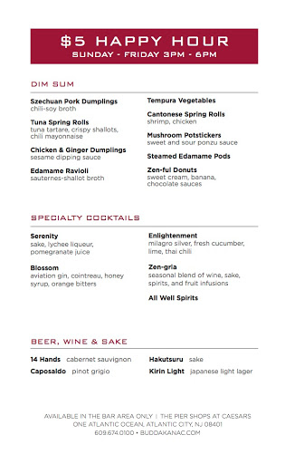 This place is amazing. My girlfriend and I come here for dinner everytime we visit Atlantic City. We went there today and everything was great. I want to give a shout out to our waiter Jordan he was beyond amazing. He was very attentive and went beyond our expectations. Not only did the food come out quickly but he always had a smile on his face and was on top of everything. There Happy Hour appetizers and drinks are really good and so is their dinner menu. The lamb chops here are to die for. I have tried many different places but at the end of the day this is the only place that I eat lamb chops from. If you have never been to Buddakan before definitely give it a try :)