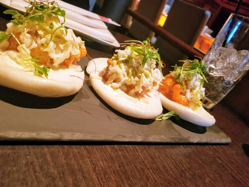 The best dish we ordered was a side of chinese eggplant. The chicken ponzo with buddha buns was poorly executed and cheap tasting for an entree of over $20. The king crab tempura was similar to the fried seafood obtained at any local Chinese food restauraunt. The sashimi was overseasoned. Waygu beef sticks were pretty good. Our waitress was cordial but didnt take much time to explain things. The restauraunt is gorgeous, especially the main dining room. It is a bit dark in this restaurant, easily the darkest restaurant ive been in. Portions were advertised large but were not as expected, especially for the price of the items. Skip this place unless youre going for cocktails.