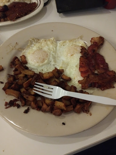 Friendly staff and awesome breakfast food. Got the Hungry Man and a side of grits and my wife got bacon eggs and hash browns. Perfect little hidden gem.