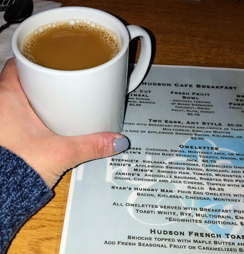 Ive been going to the Hudson Cafe since they first opened and theyve been consistently excellent ever since. The coffee is great, breakfast is spot on, and the service is excellent. I work in Atlantic Highlands, so we often order a take-out lunch here. Its always ready quickly and never disappoints. Love this local business and the staff!