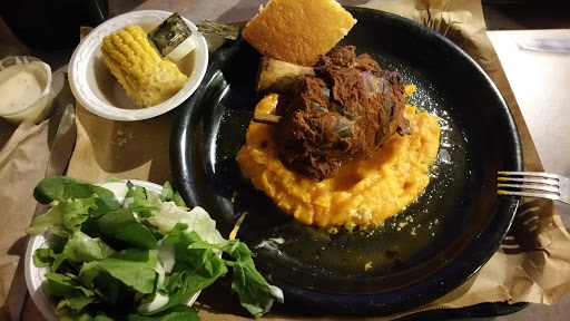Cute, house looking place. Great atmosphere, cool decor, the staff is very friendly, country music playing. Fried mac & cheese bites, fried corn are good appetizers. Great sweet tea, brisket, pulled pork and the smoked sausage is out of this world. Finished it off with homemade pumpkin pie. Reasonably priced, will definitely be back again.
