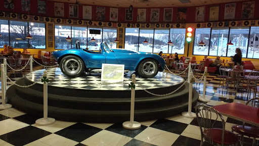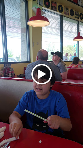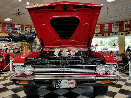 We moved here recently and i could tell when we pulled up we were in for a treat. Our family just loves this place. Great atmosphere and kind staff. Usually a nice treat in the middle of this 50s themed restaurant. My favorites were the Batmobile and other classic hot rods. Old movie posters grace the walls and a train chugs quietly around the building. From the Big Bad John.. to the fried chicken, burgers, pulled pork ...everything is great. The kids dinners were served in cute Lil cardboard cars. Dont forget the classic shakes. This place is a cant miss especially with the kids!