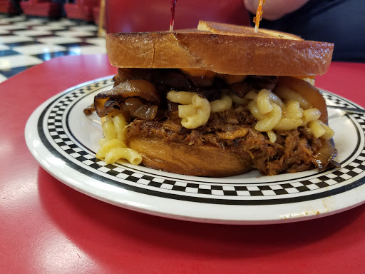 The Chatterbox was a really unique diner. The burgers and the Big John (pulled pork sandwich) were good, and the milkshake was great. Beyond the food, this is a really neat place because of the old school feel. The dining room is a big round space with a classic car on display in the middle. They have all kinds of old school movie memorabilia. You feel like you are in Happy Days or American Graffiti. Service was great and prices were very reasonable. Definitely a cool spot to visit.