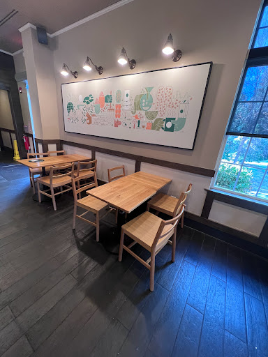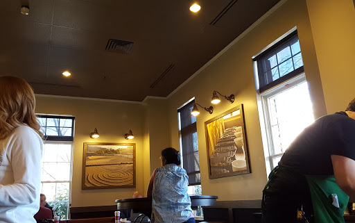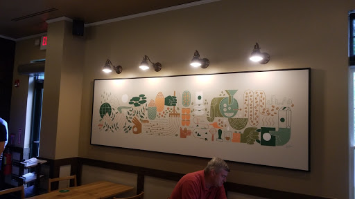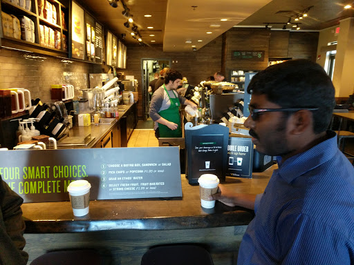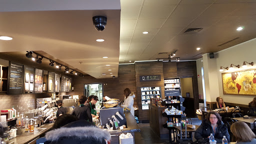 Very friendly staff, reasonable lines. I rate it a 4 because of the size of the location. Too small and crowded to relax in. It is a convenient location for me so I am happy to have a less than comfortable Starbucks near by.
