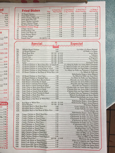 I usually buy the steam shrimp with fried plantains (platanos/tostones) and garlic sauce at a reasonable price. Its good!
