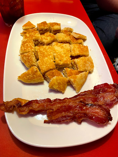 I enjoyed my breakfast! Seasoned potatoes, sausage, bacon, and pancakes were all very good. The service was friendly and prompt. I was impressed considering the number of customers. Tables full and a line at the door, still good. The hostess was very attentive to everyone too.