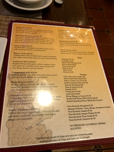 Horrible place, I happen to stop on mothers day 2017, they had a limited menu due to occasion (understood) but their takeout menu was available( I was not given a chice). I did see that they had raised their prices about 20% in comparison to takeout menu, for example the guacamole was 6.99 regular price... Mothers day menu guacamole was 11.99. I guess this guac had their mothers tears or something super special. I would not be returning!!??
