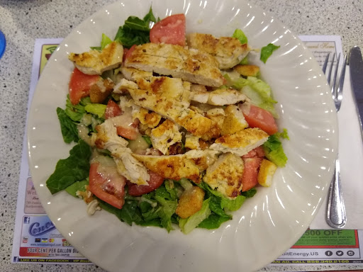 Local, small diner. Translation: dated interior but thats about ther only negative. Food was fresh, even the salad, nothing wilted or questionable. Very cold lettuce which was a surprise. Very friendly server. Basic diner menu, great specials and generous portions. Its a nice local family friendly place for a quick dinner or breakfast when youre not in the mood to cook.