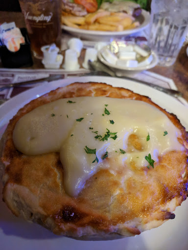 Horrible service! Our waiter kept checking on one of his tables like 5 times and totally forgot about us after he brought our food to us. When he realized he forgot about us he was standing across the room and i was starring him down and he ran over to us hahaha i mean i understand if he was new but we tipped him anyway. food was bland tasted like it came from a can and my salad was soggy.