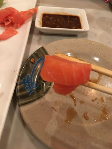 I had this delicious vegetarian roll. Like most Japanese restaurants, there are vegetarian options. Instead of seaweed it was on the low calorie section, rolled in cucumber. I had to personally request it just to be vegetables. Giving four stars. When we first arrived there was a funny smell that almost reminded me of a bug spray. Other than that a nice atmosphere.