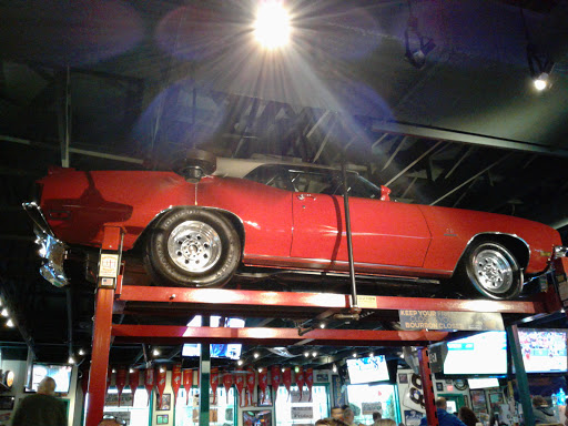 Automotive themed family friendly restaurant. Half pound Steak Burgers, baby back ribs and chicken headline this family style menu. 24 different hot levels of sauce for chicken wings boneless or bone-in! Major Automotive themed environment with entire cars either hanging from the ceiling- motorcycles dangling from cables you can even eat underneath a hot rod up on a lift. Full bar with outdoor service on a patio.