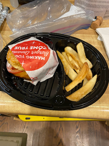 You have a choice of fries, salad or Cole slaw. Best ever on choices. Cannot even read the whole menu. It is so big. They have a lot of choices besides burgers. So you really have to try it at least once. Yippee