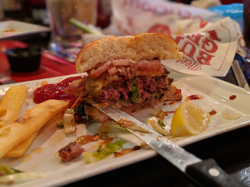 Always great burgers - love the bottomless steak fries. Had bacon cheese burger & my boyfriend had the bonzai burger with sweet potato fries. Our server Juan was friendly and attentive.