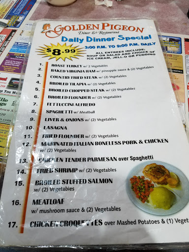 I would say that out of all places to eat in New Jersey, the Golden Pigeon would have to be the only good place to eat. It has great food and great service. The menu and the atmosphere looks and feels fantastic too.
