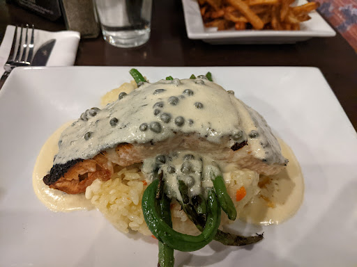 The food is absolutely great! Ive had their Flat Iron steak atleast 4 times, cooked perfect each time the way I asked for it, their burgers are fantastic! Seafood is the same! Fantastic! The service is as good as it gets! Ive enjoyed my experience and food everytime! Weither Im taking out or eating in!