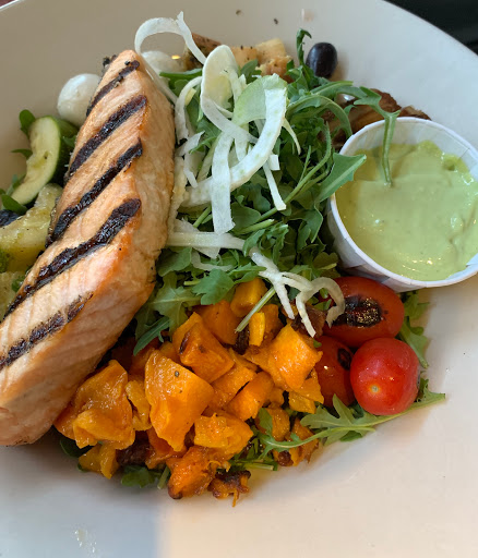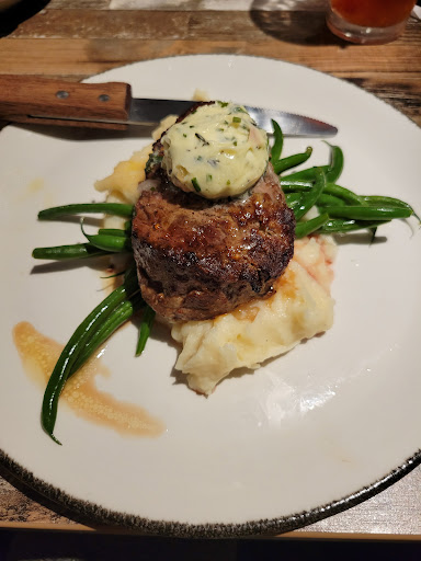 Food was excellent! I had the catch of the day (hallibut)...with garlic mashed potatoes and string beans, in a lovely lemon butter sauce. The portion was perfect, the fish was cooked just right...everything was great! (And Im a very very particular diner.) The rest of my family also had great meals...a whole rack of ribs (so tender, and huge!), a bone in pork chop (delicious), big chickpea and spinach salad, fresh homemade pasta with scallops and shrimp in a light cream sauce (so good). I wish I was staying longer so I could go back and try something else...they have a nice sized menu, not overloaded. And the staff was very friendly and attentive. If youre ever in the area, I highly recommend stopping for dinner here.
