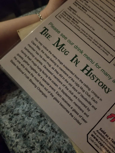 My wife and I went to the Ugly Mug and had fantastic service and the best Maryland Crab Burger ever. It is juicy and messy and everything that you want in a fantastic burger topped with delicious crab. We also had the clam chowder which was out of this world good. Definintely a great pub with lots of history. Great people and worth every penny!!