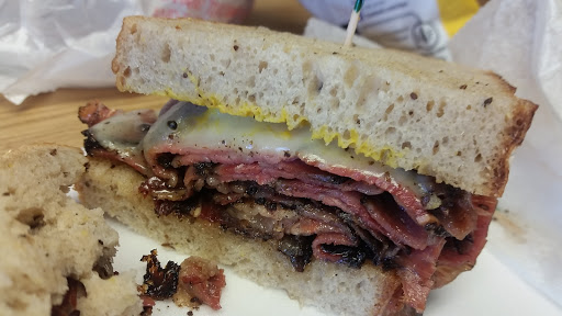 Ive been here a few times for pastries and bagels, but today a co-worker and I were offered lunch and decided to get a cheese steak ... it was good, the bread was fresh and even came with a pickle and a tiny potato salad (which I usually dont like, but it was quite tastey). I was somewhat disappointed regarding the lack of steak vs cheese and bread ... Overall not bad but not great. Dont judge it by the looks, judge it by the taste!